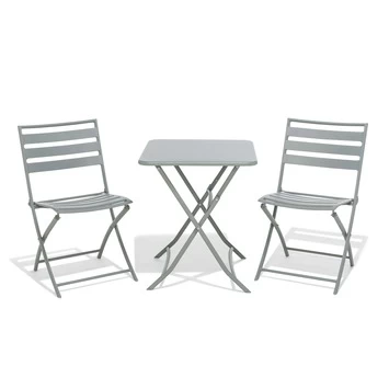 De bistroset Rochelle bestaat uit 1 vierkant tafeltje en 2 stoelen gemaakt uit staal in de kleur antraciet. Zowel het tafeltje als de stoelen zijn inklapbaar, zodat je ze makkelijk aan de kant kan zetten. Ideaal in kleine ruimtes, zoals het balkon van je appartement of een bijterras.