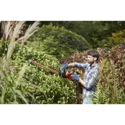 De BLACK+DECKER elektrische heggenschaar BEHTS401 is een zeer krachtige 500 watt heggenschaar met een zwaardlengte van 55 cm. De snijcapaciteit bedraagt 22 mm. Het bijzondere van dit model is dat er aan het eind van het zwaard een 35 mm lange zaag gemonteerd zit, waarmee je ook dikke takken tot 35 mm kunt verwijderen. Hierdoor is hij uitermate geschikt voor het snoeien van grotere, oudere hagen. Hij heeft een comfortabel beugelhandvat, waardoor je in iedere positie volledige controle over de machine hebt.