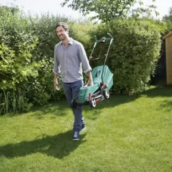 De Bosch grasmaaier ARM 34 is een veelzijdige en moderne grasmaaier. De maaier heeft een vermogen van 1300 Watt en een maaibreedte van 34 cm. Dankzij de bijzonder sterke power-drive motor, wordt je gazon razendsnel en nauwkeurig gemaaid. De grasmaaier heeft scherpe messen die, in tegenstelling tot andere grasmaaiers, ook buiten de wielen maaien. De fijne handgrepen zijn verstelbaar en kunnen op jouw lengte worden ingesteld. Ook is de maaihoogte in 5 verschillende standen instelbaar. De grasmaaier heeft een opvangbak van 40 liter, zo kan je zonder onderbrekingen je gazon maaien en hoef je niet te harken. De grasmaaier heeft een licht gewicht en kan met de verstalbare grepen compact worden opgeborgen. Kortom, de Bosch grasmaaier ARM 34 zorgt altijd voor een verzorgd en mooi gazon.