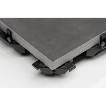 Ceramidrain is dé revolutie op het gebied van keramische terrastegels. Het product heeft namelijk alles in zich! Het combineert de positieve eigenschappen van keramische tegels met het verwerkingsgemak van een betontegel. Daarnaast kan het product regenwater onder je terras bufferen en geeft het langzaam weer af aan de grond (draineren). De bovenlaag van de Ceramidrain bestaat uit een keramische tegel van 16 millimeter dik. Keramische tegels zijn duurzaam en niet of nauwelijks aan verkleuring onderhevig. Bovendien zijn ze slijtvast en niet gevoelig voor krassen. De kunststof onderlaag heeft een open structuur en een wateropslagcapaciteit van maar liefst 22 liter per m². Regenwater wordt in deze onderlaag opgevangen en kan vervolgens langzaam worden afgegeven aan de grond. De twee lagen van de Ceramidrain zitten aan elkaar vast door een ijzersterke, gepatenteerde spreidplugverbinding. De lagen kunnen niet loskomen van elkaar, ook niet met vorst. Dankzij de speciale Plug- & layverbinding schuif je de tegels makelijk in elkaar en is het leggen van de Ceramidrain zeer eenvoudig, mede doordat de tegels met 17 kilogram per stuk licht in gewicht zijn. Ceramidrain-tegels kun je gewoon verwerken in een drainerend (eventueel stabiliserend) zandbed. Ze hebben een afstandhouder van 3 mm die zorgt voor een optimale afvoer van het water. De tegels hoeven niet gevoegd te worden, dit heeft een gunstig kostenaspect. Keramische tegels bevatten verschillende prints. Door deze variatie in nuancering en tekening, ontstaat een mooi, natuurlijk beeld. Zo is iedere vierkante meter bestrating in je tuin uniek. In de specificaties van deze keramische tegel, lees je hoeveel verschillende prints dit product heeft. Waar mogelijk laten we bij de afbeeldingen van de keramische tegels ook de verschillende prints zien, voor een zo compleet mogelijk beeld.