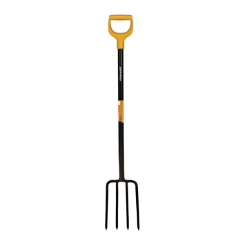 De Fiskars spitvork garandeert door de robuuste constructie, tanden en steel jarenlang werkplezier in de tuin. De spitvork is te gebruiken voor het losmaken en omscheppen van compacte grond. Ook geschikt voor het verticuteren van het gazon of het wegharken van stenen en onkruid.