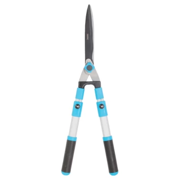Deze GAMMA heggenschaar is geschikt voor het snoeien van heggen, buxussen en coniferen. De telescopische armen van de heggenschaar zijn verlengbaar van 33 tot 55cm en de aluminium handvaten van de snoeischaar zijn voorzien van anti-slip rubber waardoor u een goede grip heeft. De messen van de schaar zijn geproduceerd uit gehard chroom S50C wat zorgt voor een rechte, scherpe snede. Daarnaast hebben de messen een tefloncoating, wat het snijden en reinigen van de messen makkelijk maakt. Maak na gebruik de metalen gedeeltes van de heggenschaar schoon met water en spray of smeer deze in met teflonspray of olie; op deze manier blijft de kwaliteit behouden.