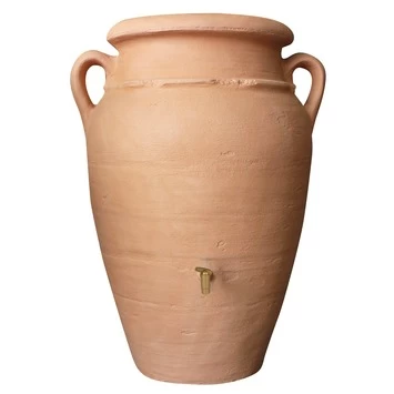 Een regenton in de vorm van een Griekse vaas of amfoor? Dan heb je de Regenton Amfoor antiek terracotta 360 liter nodig. Erg handig want met deze kunststof regenton vang je maximaal 360 liter regenwater op waarmee je jouw planten kunt verzorgen of je auto kunt wassen. Dankzij het handige kraantje kun je eenvoudig water in je emmer of gieter tappen. De compacte oranje regenton heeft een diameter van 88 centimeter, een hoogte van 120 centimeter en een inhoud van 360 liter. Het materiaal van de waterton is vrijwel onverwoestbaar. Vorst, regen en dergelijke weersomstandigheden hebben geen vat op deze regenton, wel dien je de regenton leeg te maken bij vriestemperaturen.