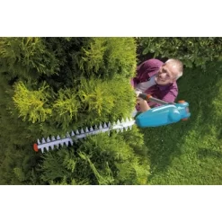 De Gardena heggenschaar telescopisch THS 42/18V is perfect voor het snoeien op lastiger te bereiken plekken, zoals bijvoorbeeld een heg tot wel 3 meter hoogte. Het snoeizwaard kan tot een hoek van 90º graden gekanteld worden voor nog beter bereik. Door het ‘Power for all’ accu-systeem kan een accu niet alleen voor het Gardena 18V ‘Power for all’ accuplatform gebruikt worden, maar ook nog eens voor bijvoorbeeld Bosch. De Gardena heggenschaar telescopisch THS 42/18V wordt geleverd zonder accu, deze zijn los verkrijgbaar en multi-inzetbaar!