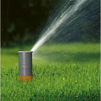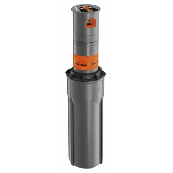 Het bereik is variabel tussen 5 en 8 m voor het afzonderlijke oppervlak instelbaar. De sector die moet worden besproeid kan traploos (zonder gereedschap) op de sproeierkop worden aangepast van 25 tot 360°. Hiermee kunt u kleine sectoren of in een volledige cirkel besproeien. Door de geheugenfunctie gaat de sproeier automatisch terug naar de ingestelde sector, ook als de sproeierkop handmatig is gedraaid. Zo wordt altijd het juiste gebied besproeid. Voor flexibele besproeiing zijn er vier spuitmonden met verschillende toevoersnelheden, die kunnen worden geselecteerd op basis van het te besproeien oppervlak. Dit is vooral belangrijk voor een gelijkmatige besproeiing bij gebruik van meerdere soorten sproeiers en verschillende ingestelde besproeiingsoppervlakken. Het geïntegreerde vuilfilter zorgt voor een ononderbroken werking. Het betrouwbare, zandbestendige turbinetandwiel zorgt voor een lange levensduur. Door de installatie van een Ontwateringsventiel (art. nr. 2760-20) in de leiding is het Sprinklersystem vorstbestendig. Voor aansluiting is er een binnendraad van 1/2″ aanwezig.