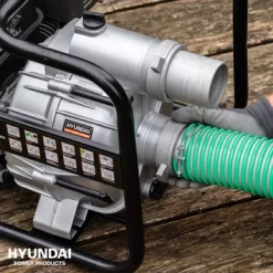 Deze duurzame Hyundai 80 mm waterpomp heeft een krachtige 208 cc OHV-benzinemotor. Deze machine is geschikt voor verpompen van ongeraffineerd en vuil water. Mede door de afmeting van de 80 mm (3”) in- en uitlaat levert de machine een indrukwekkende en betrouwbare pompkracht met een stroomsnelheid van 750 L per minuut en kunnen deeltjes met een diameter tot 22 mm worden verpompt. Deze waterpomp is niet geschikt voor gebruik met zeewater of andere chemicaliën, omdat dit de interne onderdelen kan beschadigen. De machine heeft een aanzuighoogte van 7 m en een totale opvoerhoogte van 25 m. Met een gewicht van slechts 38,5 kg is dit een relatieve lichtgewicht waterpomp die is gebouwd met transport en opslag in gedachten. Het stevige open frame beschermt de pomp tegen schokken en stoten welke ook functioneert ook als handige handgrepen.