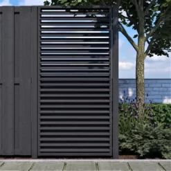 Het Jaloeziescherm is gemaakt van meerdere lamellen voor een shutter effect. Het lamellenscherm ook gekend als een shutterscherm is gemaakt van geïmpregneerd geschaafd vuren hout. Door het impregneren van het hout is dit scherm beter beschermd tegen weersomstandigheden. Dit scherm is ideaal te gebruiken voor bijvoorbeeld tussen een regulier tussenschermen voor of als afscheiding onder een overkapping. De totale dikte is ca. 8 cm en heeft hierdoor een robuuste uitstraling.