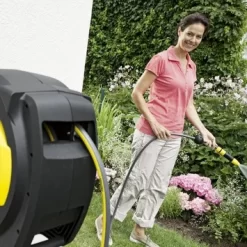 Op een simpele manier je planten water geven, doe je met deze Kärcher automatische slanghaspel CR 7.220. Deze slanghaspel is perfect voor het sproeien van middelgrote tuinen. Dankzij de hoogwaardige Kärcher-slang van 20 meter blijft geen bloem of plant in je tuin zonder water zitten. Deze slanghaspel is voorzien van een platte wandhouder met een draaibereik van maar liefst 180°, zodat je met deze tuinslang alle kanten op kunt. Toebehoren hang je eenvoudig aan de onderzijde van de slaghaspel op, wat je weer extra opbergruimte bespaart. Kortom: voor een soepele sproeibeurt kies je deze compacte slanghaspel met wandhouder.