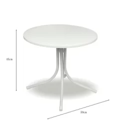 De tafel heeft een diameter van 50 centimeter en een hoogte van 48 centimeter.