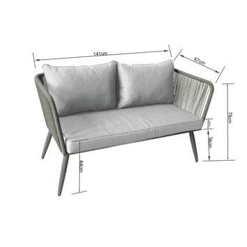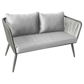 De Loungebank Pamplona is terug van weggeweest. Deze loungebank is een hippe bank, gemaakt van kunststof waarbij de rug- en armleuningen bestaan uit geweven touw. De Loungebank Pamplona is geschikt voor 2 personen en dus ideaal om buiten van het heerlijke weer te genieten of lekker even te relaxen. De toevoeging van het geweven touw maakt dat de loungebank er modern uitziet, waardoor die in elke tuin goed zal passen.