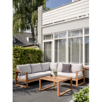 De Loungeset Louis is een heerlijk royale loungeset om buiten lekker te genieten van het mooie weer of even te relaxen? De Loungeset Louis bestaat uit een mooie grote hoekbank, geschikt voor 5 personen, inclusief een moderne salontafel. De set is gemaakt van hout en is dit seizoen wederom een eyecatcher binnen de categorie ‘loungesets’.
