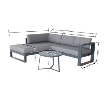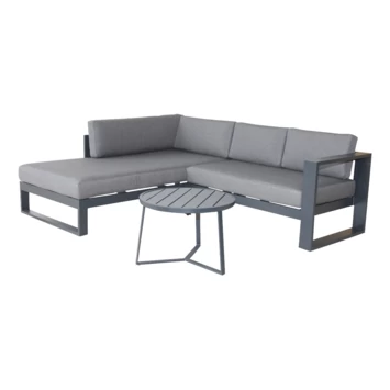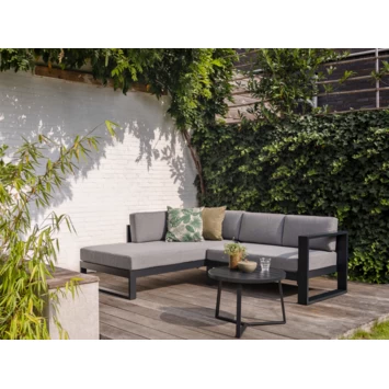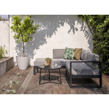 Lekker genieten van het heerlijke weer of buiten even relaxen? Dan is een loungeset ideaal. De Loungeset Menton bestaat uit een hoekbank, geschikt voor 3 personen, inclusief een moderne salontafel. De set is gemaakt van aluminium. Het voordeel van aluminium is dat je geen last hebt van roestvorming, waardoor je langdurig plezier hebt van een mooie loungeset. Daarnaast bevat de Loungeset Menton bredere rug- en armleuningen wat de set een stoere look geeft.