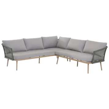 De set wordt geleverd inclusief lichtgrijze rug- en zitkussens, die met een coating water- en vuilafstotend zijn. Tevens zijn de kussens waterdoorlatend, wat betekent dat de kussens snel opdrogen mocht er een regenbui overheen gegaan zijn en/of water op zijn gevallen. Het rugkussen bevat een dikte van 13 cm en het zitkussen een dikte van 8 cm. Hierdoor kun je comfortabel van de set genieten.