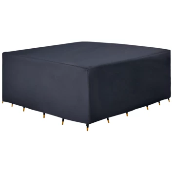 Deze tuinset hoes vierkant 250 cm is geschikt voor een loungeset of tuinset. Met deze hoes zorg je ervoor dat je langer kunt genieten van jouw set. De beschermhoes is gemaakt van kunststof en is waterdicht. Doe de hoes over een droge tuinset en berg kussens binnen op een droge plek op of in een kussenhoes. De afmetingen van deze hoes zijn 250 cm bij 250 cm.
