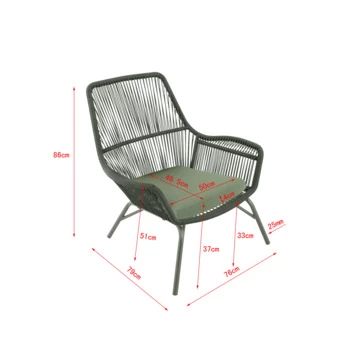 De aangename stoel Lissabon van het merk Wakefield heeft een groene kleur en is gemaakt van staal. De stoel zit erg comfortabel doordat er een groen kussen wordt bijgeleverd. De stijlvolle stoel pas perfect bij andere tuinmeubelen en is dan ook makkelijk te combineren. De loungestoel heeft een afmeting (hxbxd) van 86x76x78 cm. Om de stoel langer te gebruiken, wordt aangeraden de stoel op te slaan op een beschutte plek of af te dekken met een hoes na de zomermaanden.