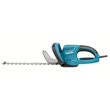Met deze Makita elektrische heggenschaar UH4570 kunt u met gemak kleine tot middelgrote heggen aan. Deze machine is uitgerust met drievoudige handgreep, dat houdt in dat deze heggenschaar ook in een hoek van 90 graden makkelijk te bedienen is. Makita heeft de UH4570 voorzien van een slipkoppeling tegen vastlaan en een snelstop door een elektrische rem, twee voorzieningen die deze machine net iets veiliger maken voor de gebruiker. De heggenschaar heeft een bladlengte van 45 cm en kan takken snoeien tot een dikte van 18 mm.