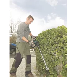 De Metabo accu heggenschaar AHS 18-55V is uitgerust met diamantgeslepen mestanden. Het speciale geometrische ontwerp voorkomt slijtage en gaat daardoor 200% langer mee. De softgrip handgreep en het ergonomische ontwerp maken de accu heggenschaar een plezier om mee te werken. Het mes beschikt over een elektronische snelstop, deze zorgt ervoor dat het mes in 0,3 seconden stil staat. De aanstootbescherming houdt de gebruiker veilig en voorkomt de overdracht van terugslag. De krachtige 12V accu’s zijn uitgerust met Ultra-M technologie, hierdoor hebben ze een hoog vermogen en drie jaar garantie. De heggenschaar heeft een zwaardlengte van 530 mm en een snijcapaciteit van maximaal 18 mm.