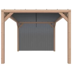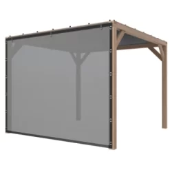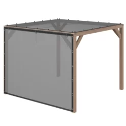 De pergola Silvano Douglas met zonweringdoek en zijdoek is 256 cm hoog, 328 cm breed en 324 cm diep, afhankelijk van de kant waar het zijdoek wordt bevestigd. De pergola heeft een stevige basis dankzij de halfhoutse hoekverbindingen en schoren. De robuuste staanders van 12 x 12 cm geeft de pergola een stoer karakter. Het kwalitatieve schaduwdoek biedt bescherming tegen de zon. Het zwart doek heeft een lichtgrijze en een donkergrijze kant. Je kunt zelf bepalen welke zijde je boven en onder plaatst, beide opties zijn mogelijk. Je kunt het schaduwdoek gemakkelijk bevestigen met zeilogen en knoppen. Het zijdoek wordt aan de bovenzijde bevestigd met een caravanrail en aan de zijkanten met zeilogen en knoppen. De 3 oprolriempjes aan de bovenzijde van het doek zorgen ervoor dat het doek tijdelijk kan worden opgerold. Zowel het doek aan de bovenzijde als aan de zijkant kunnen s ’winters er af worden gehaald, voor een langere levensduur.