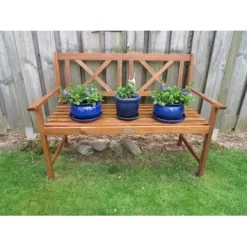 Deze klassieke Tuinbank voor twee is geschikt voor veel plekken rondom het huis. Tevens kan de bank door de gangbare afmetingen ook geplaatst worden op een balkon of een kleine patio. De tuinbank is gemaakt voor geolied acaciahout (hardhout).