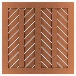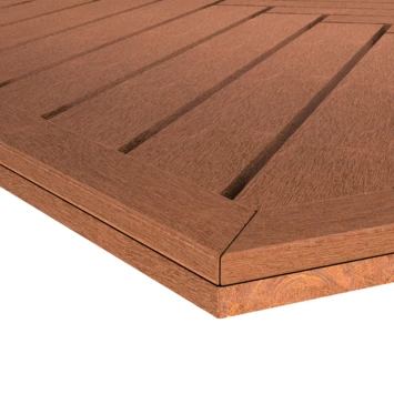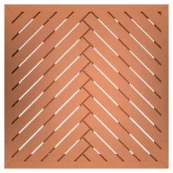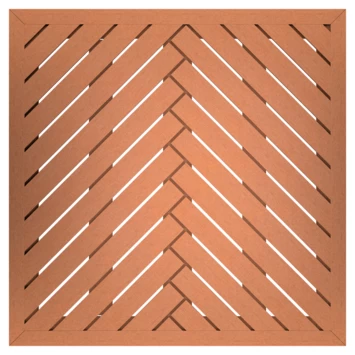 De vlondertegel hardhout visgraat is 2,4 cm hoog, 100 cm breed en 100 cm diep. De vlondertegel bestaat uit 27 gladde planken die in visgraatmotief in een lijst, bovenop 7 latten zijn vastgeschroefd. Om corrosie van de schroeven te voorkomen zijn de gaten en schroeven afgedicht met parafine. Monteer de vlondertegel met zelf borende RVS schroeven. De vlondertegel is gemaakt van onbehandeld Keruing. De houtsoort Keruing is afkomstig uit Zuidoost-Azië en is licht roodbruin tot donker roodbruin van kleur. Keruing hout valt in duurzaamheidsklasse 3 en heeft onbehandeld een levensduur van circa 10 tot 15 jaar. Het Keruing hout is geschaafd en kunstmatig gedroogd om scheurvorming te voorkomen.